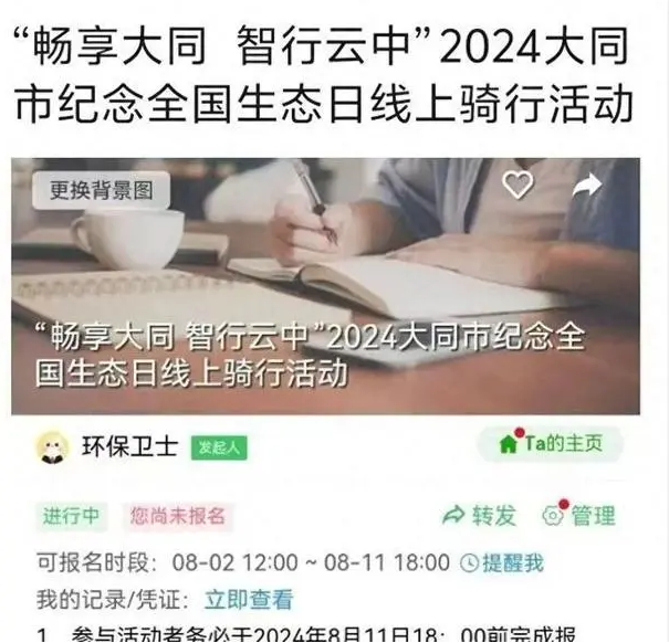 活動名稱:2024年大同市紀(jì)念全國生態(tài)日線上騎行活動