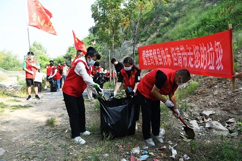 活動中,志愿者們身穿紅馬甲,一手提著預備好的垃圾袋,一手拿鐵鍬或垃圾鉗,沿途彎腰認真撿拾景區內各種生活垃圾,每個人都“戰果累累”。同時,志愿者們還積極向游客宣傳環保知識,呼吁大家共同愛護景區環境,從自身做起,減少垃圾的產生。在志愿者們的感召下,當地群眾和游客積極響應,紛紛加入志愿服務當中。