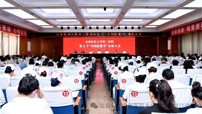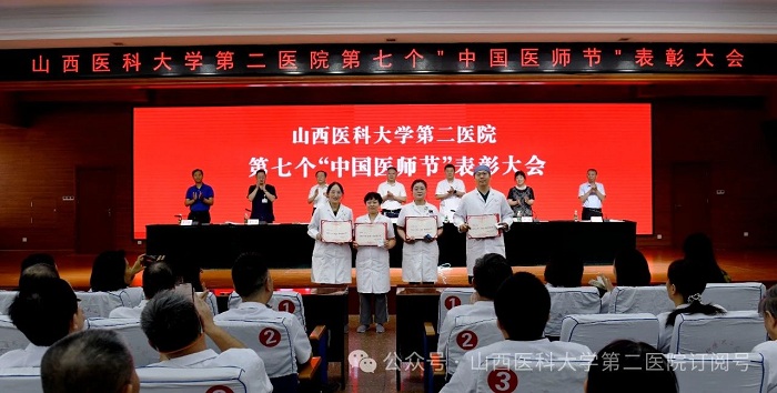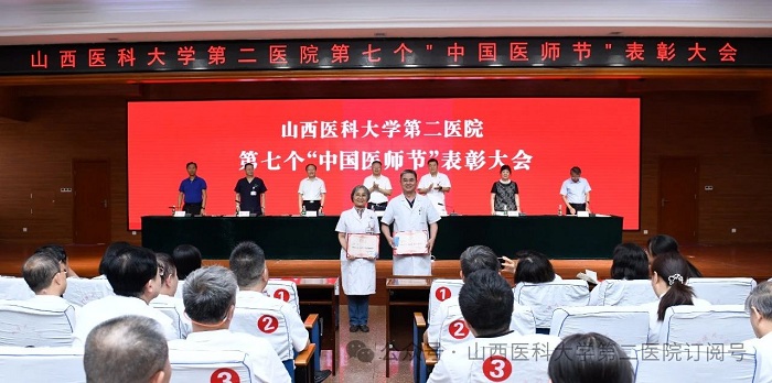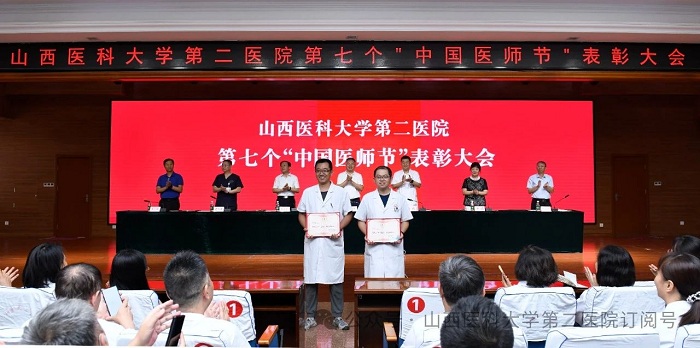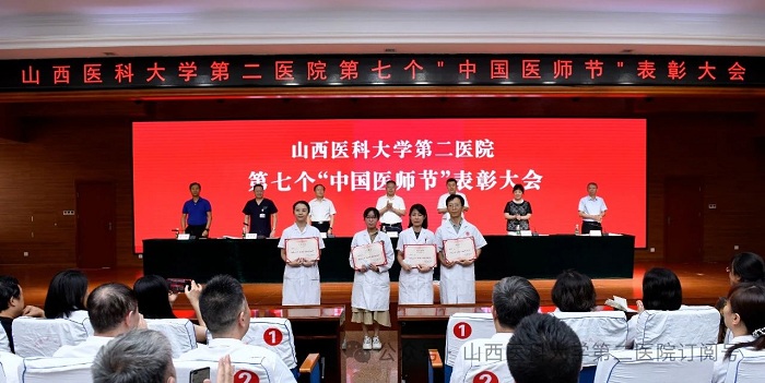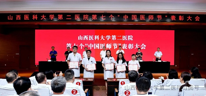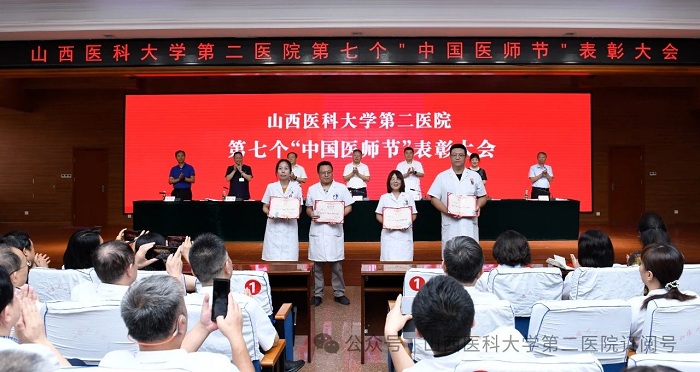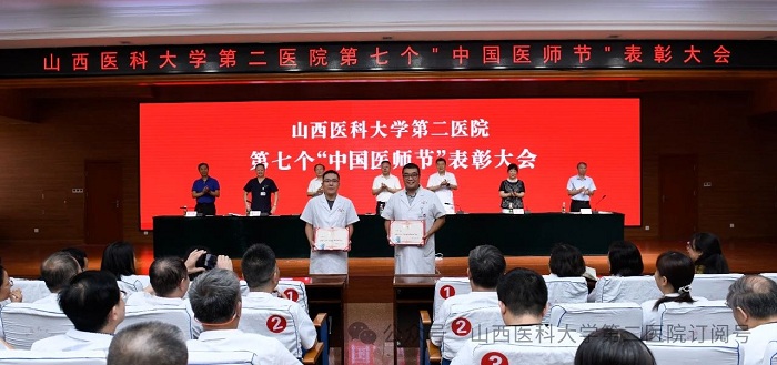 崇尚人文精神,彰顯醫(yī)者仁心。為弘揚(yáng)醫(yī)者無私奉獻(xiàn)、救死扶傷的高尚情操,激發(fā)全院醫(yī)師的職業(yè)自豪感與使命感,8月22日下午,山西醫(yī)科大學(xué)第二醫(yī)院在影像樓六層大學(xué)術(shù)報(bào)告廳召開第七個(gè)“中國醫(yī)師節(jié)”表彰大會,對在醫(yī)院醫(yī)療工作中表現(xiàn)突出的醫(yī)師進(jìn)行集中表彰。全體院領(lǐng)導(dǎo)出席會議,各黨支部書記、科主任、護(hù)士長和受表彰人員代表參加會議。