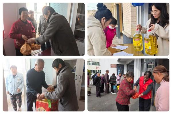 劉軒窯、樓嶺、壇嶺頭、郝莊、溝東等村邀請村里的老人齊聚一堂,共享敬老宴。長者們圍坐在餐桌旁,一邊品嘗美味佳肴,一邊閑話家常。一道道美食、一張張笑臉,匯聚成濃濃的敬老情,在餐桌間彌漫開來。與此同時,上城公、崔莊、尹東、東莒、小河西等村分別為村里老人發(fā)放大米、面、油、雞蛋等慰問品。這些慰問品不僅解決了老人的實際需求,更給予了他們精神上的慰藉,為平淡的日常生活增添了喜悅與溫暖。