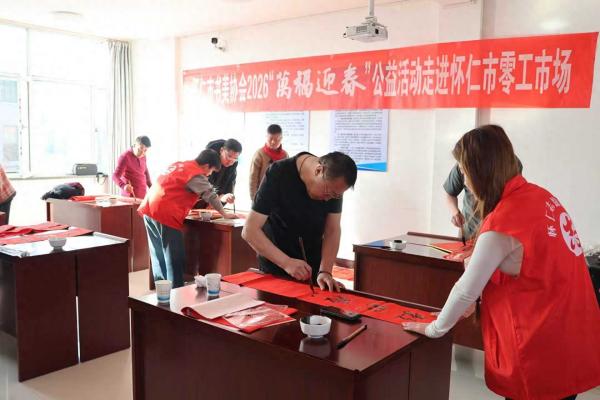 歲末春將近,墨香潤人心。1月28日,懷仁市人社局、市文聯(lián)、市新時代文明實踐中心聯(lián)合懷仁市書美協(xié)會,在懷仁市零工市場開展2026“萬福迎春”公益活動。活動以筆墨為紐帶,聚焦戶外零工群體,將中華優(yōu)秀傳統(tǒng)文化傳承與基層民生關(guān)懷精準(zhǔn)對接,為寒冬里的零工工作者送上新春祝福。