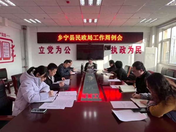 1月27日,鄉寧縣民政局召開工作周例會,局黨組書記、局長李新霞主持會議并講話,局班子成員、各股室負責人及相關工作人員參會。